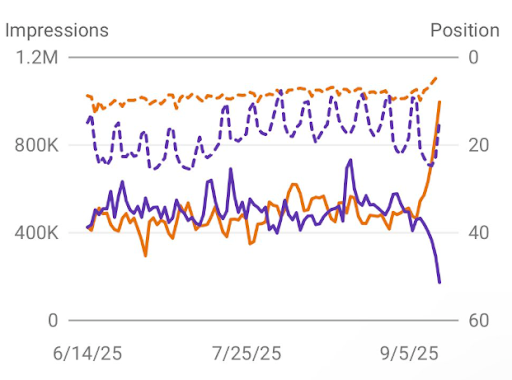 Brodie Clark was likely the first to spot this change. He posted on X and LinkedIn on Sunday, noting a clear drop in desktop impressions and a sharp jump in average position in Google Search Console data.